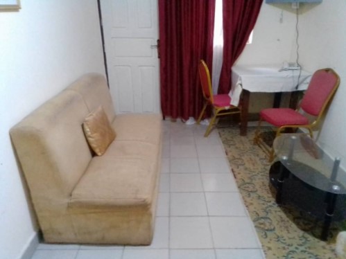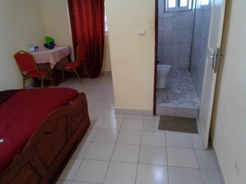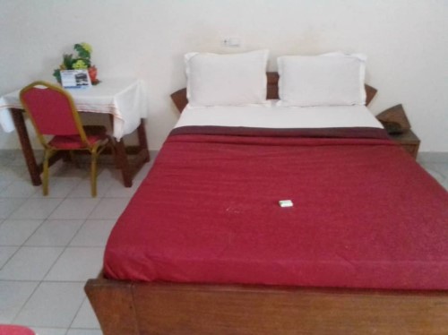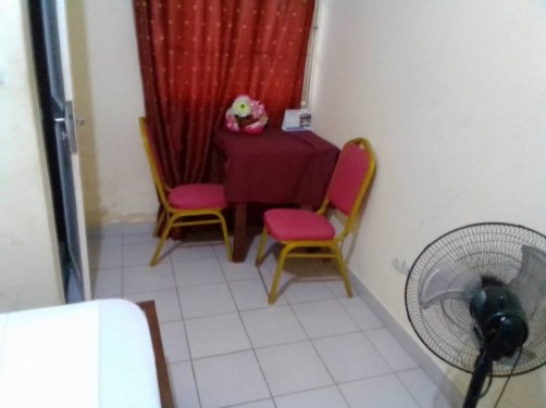 A 16-metre square room with air condition, full bed, TV, Reading Table with two chairs, and a toilet. Suited for a single individual, a couple, or an adult with a kid